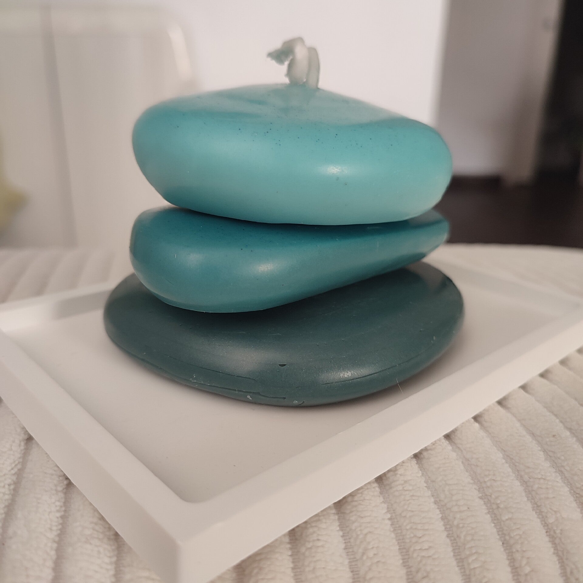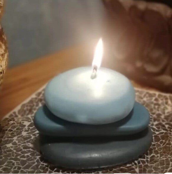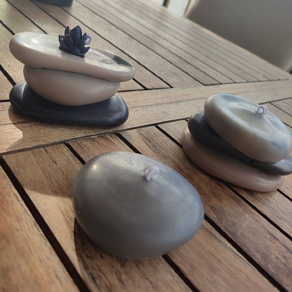 Esta vela de cera de soja 100% vegetal parece salida de un ritual de calma y equilibrio. Su diseño en forma de piedras apiladas evoca un jardín zen, donde cada capa descansa sobre la otra en perfecta armonía, como un suspiro detenido en el tiempo.