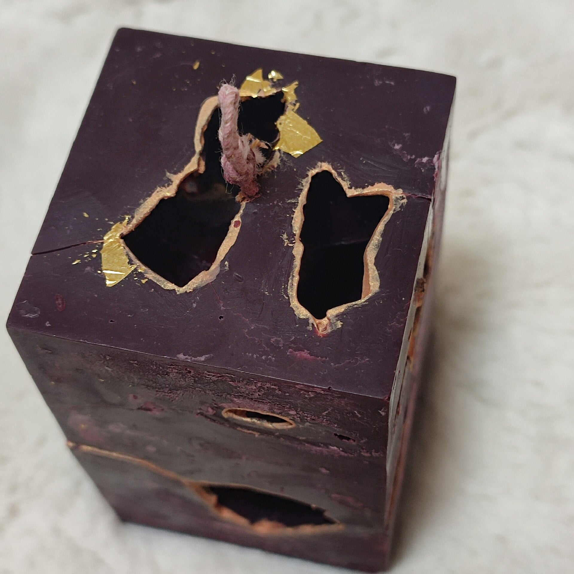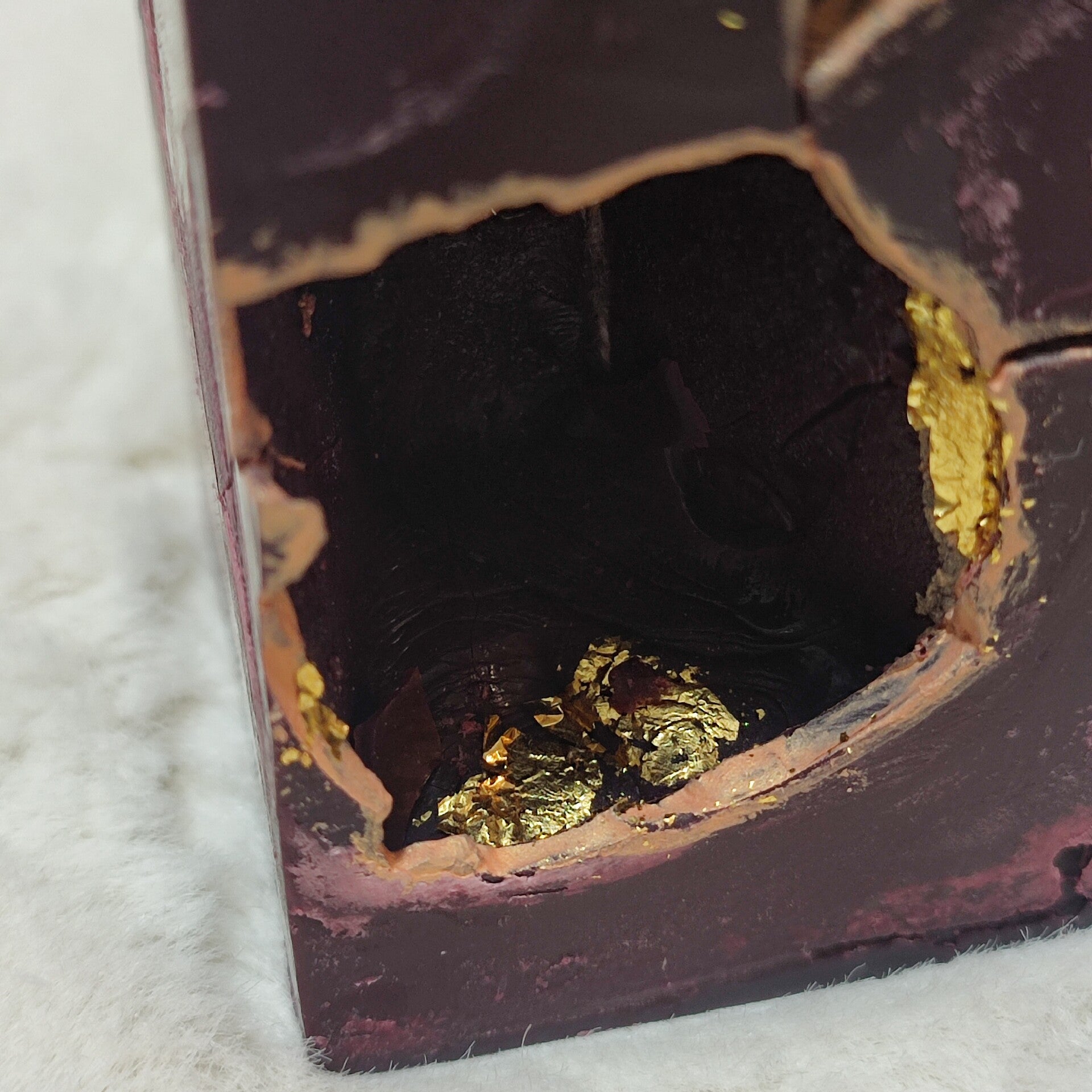 La reparación con oro que embellece la cicatriz. Bloques de sombra que abrazan sus fracturas con oro, celebrando la belleza de lo frágil.