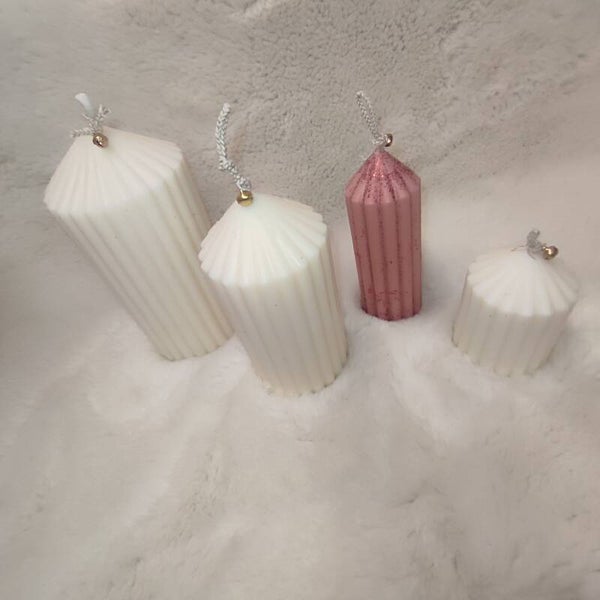 Cirios esculturales "plissè". Estas velas tipo presentan una estética moderna y sofisticada, alejándose de la forma cilíndrica tradicional para adoptar un diseño acanalado o plisado que aporta textura y juego de luces a cualquier espacio.